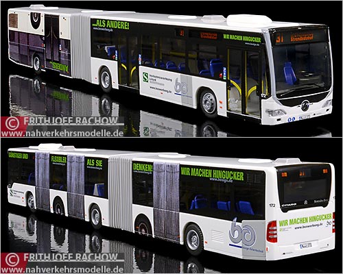 Bus MB O 530 Citaro G ver.di Lübeck Sondermodell Hersteller: Rietze #67029 Erscheinungsjahr: 01/2010 Maßstab 1:87 (H0) Ziel: --- |