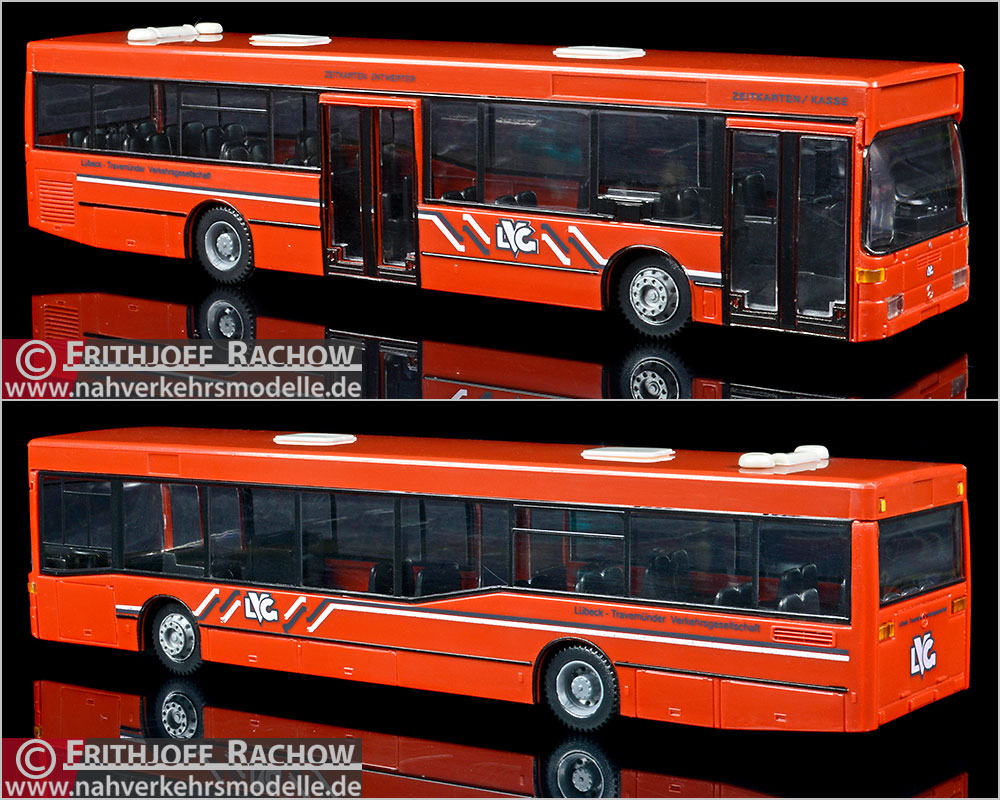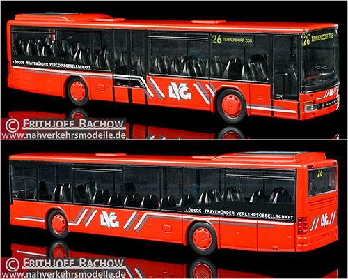 Bus MAN SL 200 Lübeck Travemünder Verkehrsgesellschaft mbH - LVG Hersteller: Rietze #72315 Erscheinungsjahr: 02/2016 Maßstab 1:87 (H0) Ziel: "Stadtlinie | F" Kennzeichendruck: "HL - T 921" XXL-Foto >> |