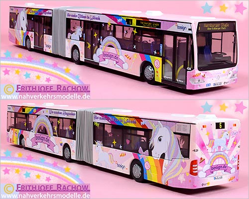 Bus MB O 530 Citaro G E4 Facelift dreitürig Stadtverkehr Lübeck GmbH Sondermodell Hersteller: Rietze Erscheinungsjahr: 07/2017 Maßstab 1:87 (H0) Ziel: "6 Hamburger Staße über Kolberger Platz" Werbung: "Bosign Folientechnik" Kennzeichendruck: "HL - SL 1428" Wagen 428 Einhorn-Bus Das fehlende "r" bei "Straße" im Zielschild wurde vermutlich vom Einhorn verspeisst XXL-Foto >> Sonderverpackung >> |