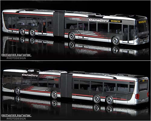 Bus MB CapaCity Werbemodell Hersteller: AWM Erscheinungsjahr: 2007 Maßstab 1:87 (H0) Ziel: "Universität" Kennzeichendruck: "MA - XI 486" Bauartbedingt lässt sich das Gelenk leider nicht knicken. |